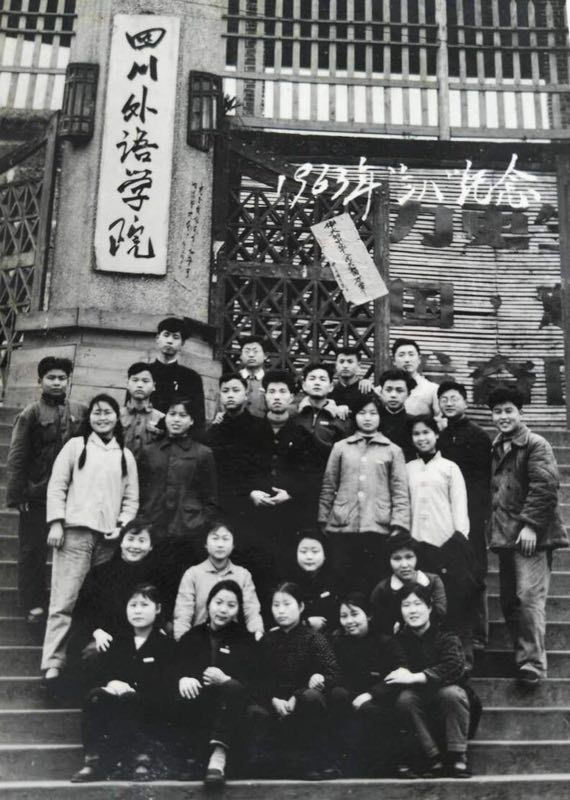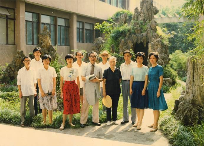 1983年,叶老师回川外讲学,在培英楼前与部分法语师生合影