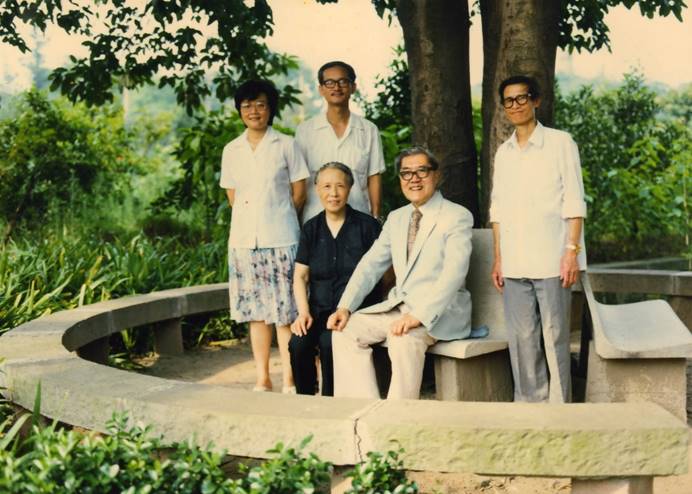 1983年,叶老师回川外讲学,与冯光荣、刘盛仪和张良春三位昔日员工合影