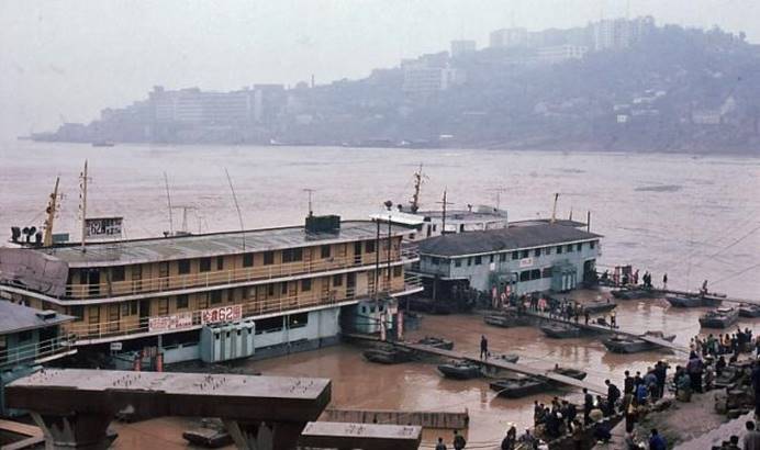 重庆,山城,暮霾中沉默着。船渐渐离开码头。倚靠在船栏上,向我的母校告别,她在鹅岭山顶上树林的后面,那一抹渐渐黯淡的晚霞里。那里,留下了我的青春。
