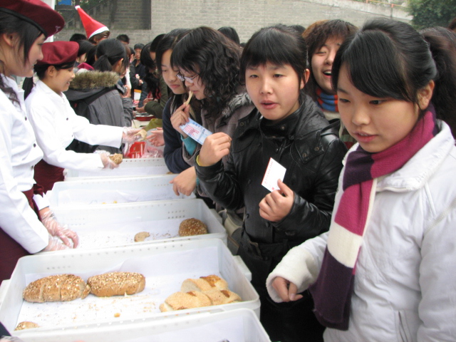 同学们纷纷品尝美味可口的法式糕点