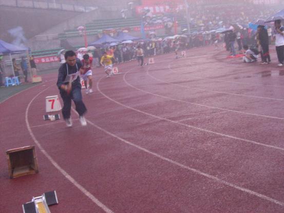 而在随后的男子4×100米接力中,我系四名男生更是冒雨比赛,矫健的身影迸发着速度与激情,自信的目光透着坚定,顽强拼搏,自强不息,最终摘得第八名桂冠。