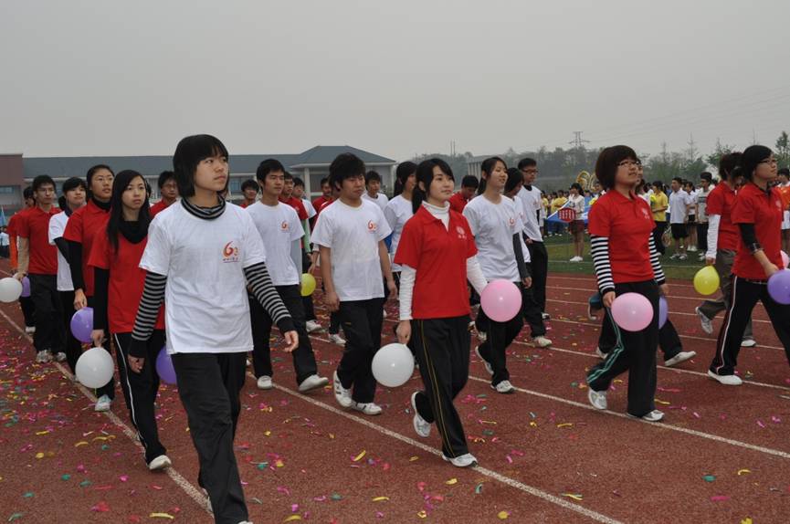 伴随着振奋人心的运动员进行曲,各个公司组成的方队开始陆续入场,红旗招展,乐声震天。一个个运动员方阵在激越人心的音乐声中迈着矫健的步伐走进师生们的视线,向大家展现出川外学子特有的蓬勃朝气和清新风貌。而法语系入场方阵代表队亦不落人后。训练有素,步调一致,意气风发。红白员工方阵还富有创意的利用颜色差异摆出数字“60”,象征了川外即将到来的60华诞,白色教师方阵面带自信的微笑,以昂扬而充满活力的精神面貌,向全校师生展现出我法语系活力四射、团结一心、朝气蓬勃的崭新姿态。表现出了法语系积极向上、勇于挑战的体育精神。他们在主席台前的表演,更是给大家留下了深刻的印象。