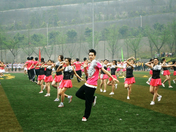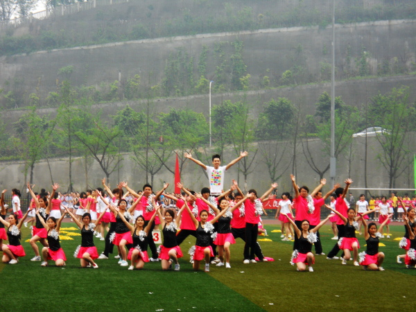 运动员退场后,排舞比赛决赛擂起战鼓。入围决赛的12支队伍被分为3组,在运动会的赛场上一决胜负,法语系被分在第2组2号场地。伴随着音乐的节奏,法语系的选手们踏着欢快的舞步进入比赛场地,开始了激情四射的舞蹈。只见他们伴随着激昂的音乐节奏,时而摇摆,时而转身,用优美的舞蹈动作,尽情挥洒青春的风采,展示了法语系员工的青春靓丽。担任领舞的彭磊同学潇洒帅气,动作标准优美,把排舞的魅力展现的淋漓尽致。重庆的天气乍暖还寒,法语系的选手们的背心和短裙等参赛服装略显单薄,但他们火热的激情和漂亮有力的动作却点燃了全场的热情,领队潇洒的舞蹈动作更是引来阵阵尖叫。最终,凭借出色的表现,法语系赢得了排舞比赛的二等奖。