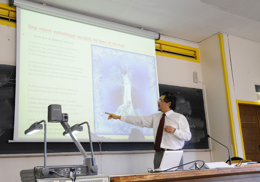 刘波教授此次赴法讲学标志着两校学术交流活动正式启动。3月4日,刘教授在勃艮第大学文公司作了题为《雨果与波德莱尔创作中的现代性特征》的讲座。听众中有本科三年级员工、研究生以及部分文公司领导、教师等。讲座深入浅出,趣味盎然。讲座以其内容的丰富、论述的深刻、语言的精准引起了听众的共鸣,获得了法国同行的高度评价。