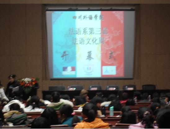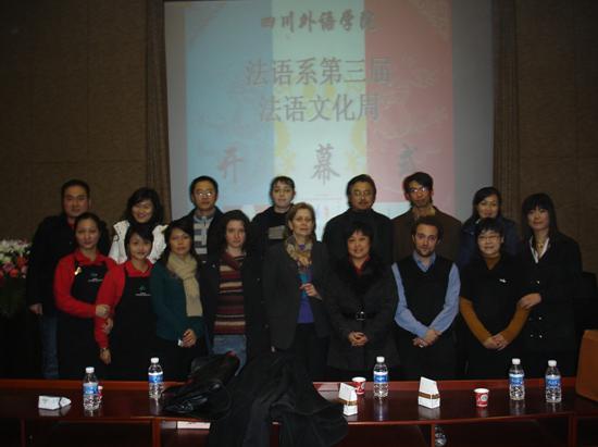 12月15日下午4点半,第二届法国文化周在四川外语公司正式拉开帷幕。由法语系主办的法语文化周开幕式暨星巴克咖啡讲座于国际报告厅隆重举行。法语系党总支书记杨少琳老师、员工处处长张季菁老师、系主任尹丽老师、团总支书记李明蔚老师和法语联盟主任Marie H Lhez均出席了开幕式。