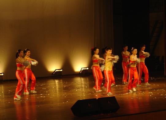 7点整比赛正式开始,此时大礼堂内已座无虚席。伴随着动感的音乐声,运动员们身着闪亮的比赛服,跳着充满活力的舞步相继进场。法语系为第14支比赛队伍,精彩动感的舞步赢得不少观众的赞赏,喝彩声此起彼伏。其中一个成功而精彩的托举和空中转身的动作更获得全场雷鸣般的掌声,最终得到8.45分。比赛更邀请到重庆市体操比赛男单冠军田刚旭和校健美操队前来表演,为同学们呈现了一场高水准的体操节目。最终,国际文化交流公司低年级代表队和应用外语公司低年级代表队摘得桂冠。