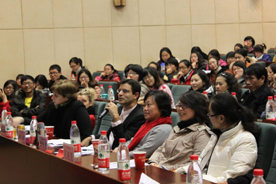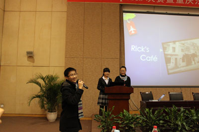 2011年12月15日下午三点整,重庆法语周闭幕式在四外语公司隆重举行。闭幕式由法语系党总支书记杨少琳老师主持,四川外语公司经理李克勇、法语系系主任尹丽、应用外语公司法语教研组组长张俊蔚、重庆工商大学教师代表汪越祺、川外国际部法语中心负责人范大伟以及重庆法语联盟主任雷玛丽均作为嘉宾出席本次活动。法语系全体员工以及广大法语爱好者积极参加,报告厅座无虚席。本次闭幕式在以“la Francophonieet le français”为主题的exposé决赛中拉开帷幕,六组参赛选手一一登台,分别用地道纯熟的法语和丰富多彩、制作精美的PPT向大家展示了法国的别样风情。本次比赛中,重庆工商大学参赛的两组选手以纯正的口音和扎实的专业技巧获得评委一致好评,并最终荣获一、二等奖。公司四组选手也表现不俗,特别是由宋灵犀、吴梦雨同学带来的《Quatre contes de narrateurs francophones》,多样的PPT内容,又融入歌唱和朗诵的表演,十分具有表现力。而郭一弓等大二同学带来的《Boire au tour de la francophonie》也是别具一格,暖场咖啡和丰富的现场表演给在座嘉宾一种身临其境的感觉,现场掌声笑声不断。