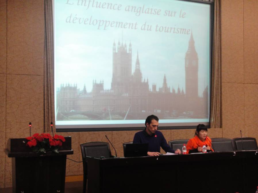 下午四点二十五分,在本次闭幕式开始之前,首先进行的是一场由法语系三位外教Mickael,Damien,Colas为大家带来的一场精彩的法语文化讲座。该讲座主要就旅游业和法国旅游业以及文化向同学们进行讲解。这是一场具有实用性的讲座,让同学们对旅游及以旅游业有了全方位的了解,也教会了我们怎样让旅游变得更有价值。这次讲座给法语系每位同学增加了新的生活启迪。