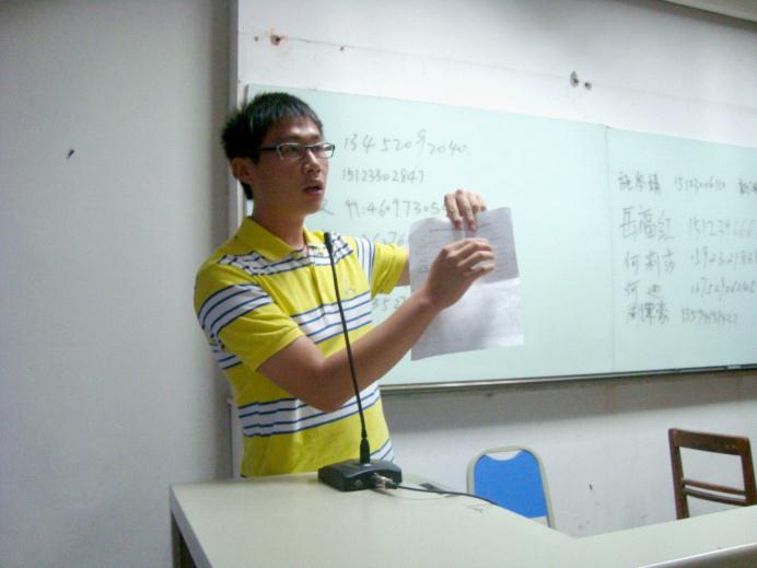 最后,大二负责人张强作总结性发言。他再次热烈欢迎新生们作为新鲜的血液融入到法语系这个有机体中。并鼓励大家踊跃加入员工会,不仅仅是为法语系服务,更要在今后四年的老员工活中活出精彩!