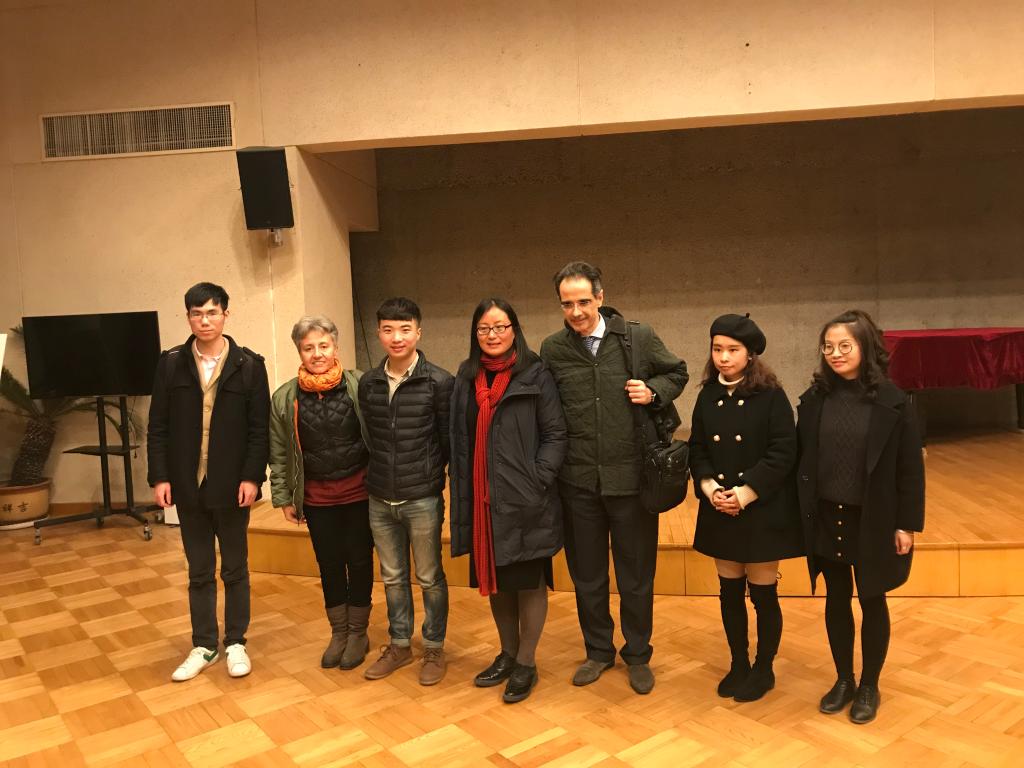 师生翻译团队与汉学家李莎、意使馆文化参赞孟斐璇合影